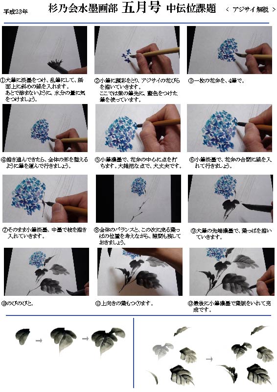 【2011年お手本】 五月号中伝課題「アジサイ」解説