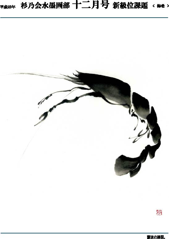 【杉乃会】のお手本は手ほどき次第で誰でも描いていけるものです。新級→中伝→奥伝→遊伝と進んでいきます。又、お手本と作品は分けて考えており、作品における自己表現はまだまだ追及していきます。