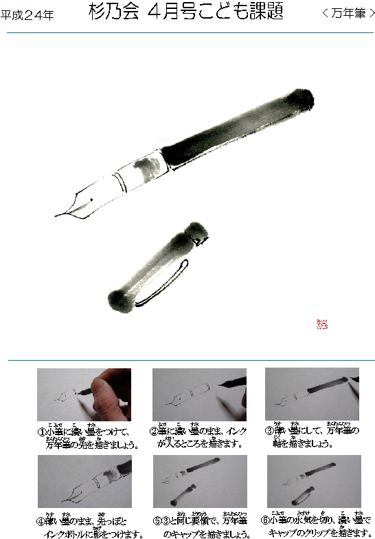 【2012お手本】 四月号こども課題「万年筆」