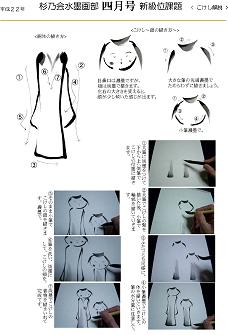 【杉乃会】のお手本は手ほどき次第で誰でも描いていけるものです。新級→中伝→奥伝→遊伝と進んでいきます。又、お手本と作品は分けて考えており、作品における自己表現はまだまだ追及していきます。