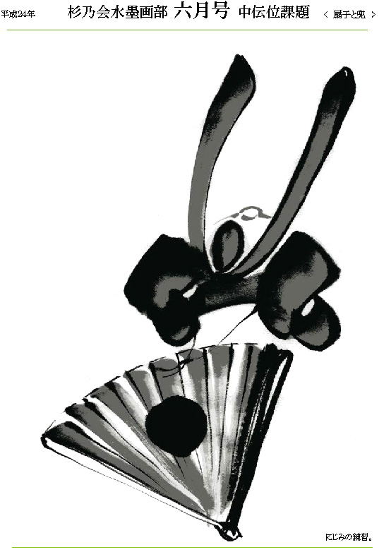 【杉乃会】のお手本は手ほどき次第で誰でも描いていけるものです。新級→中伝→奥伝→遊伝と進んでいきます。又、お手本と作品は分けて考えており、作品における自己表現はまだまだ追及していきます。