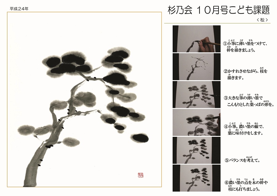 【2012お手本】10月号こども「松」色紙作品