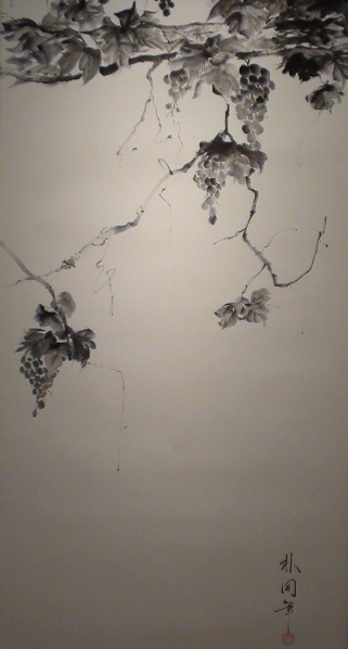 余白構図を意識し、白面に近い葡萄の葉や蔓に、軽妙感を出した。