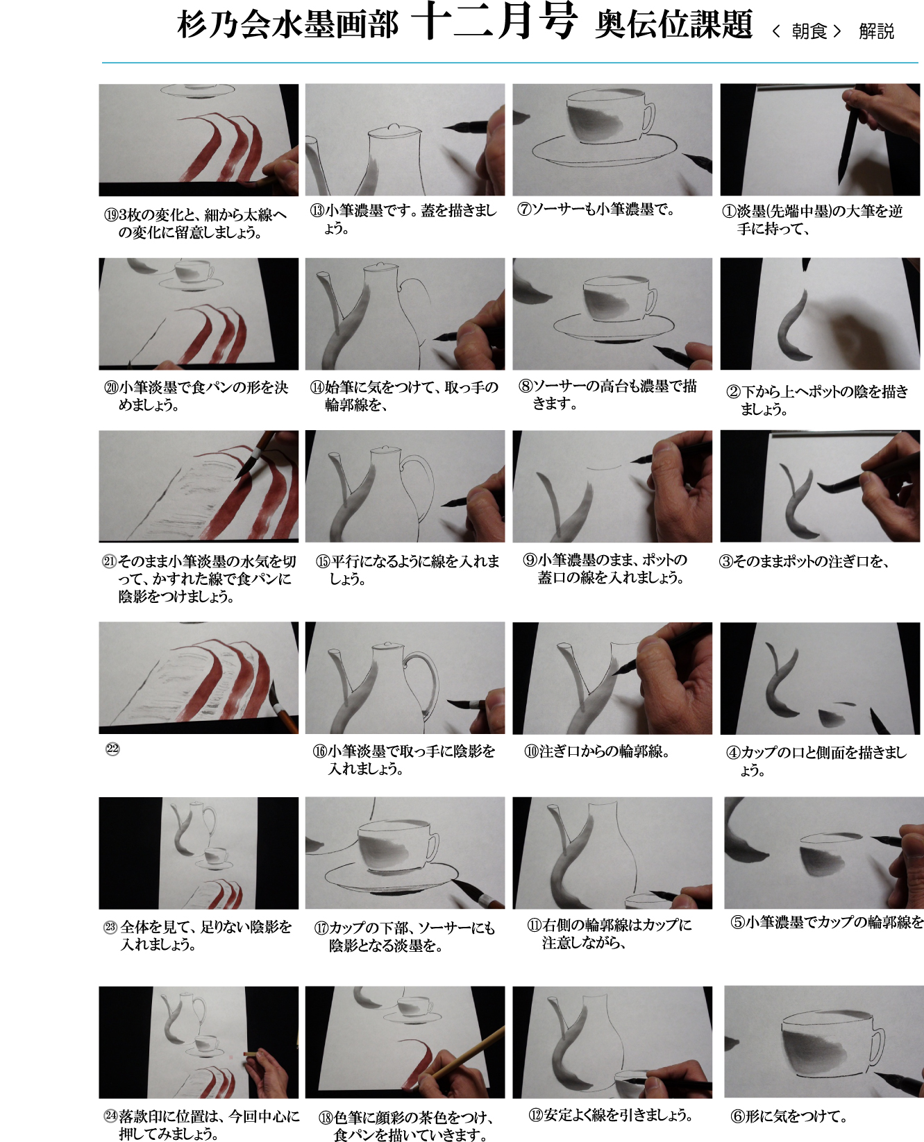 【2012年お手本】 12月号奥伝課題「朝食」解説