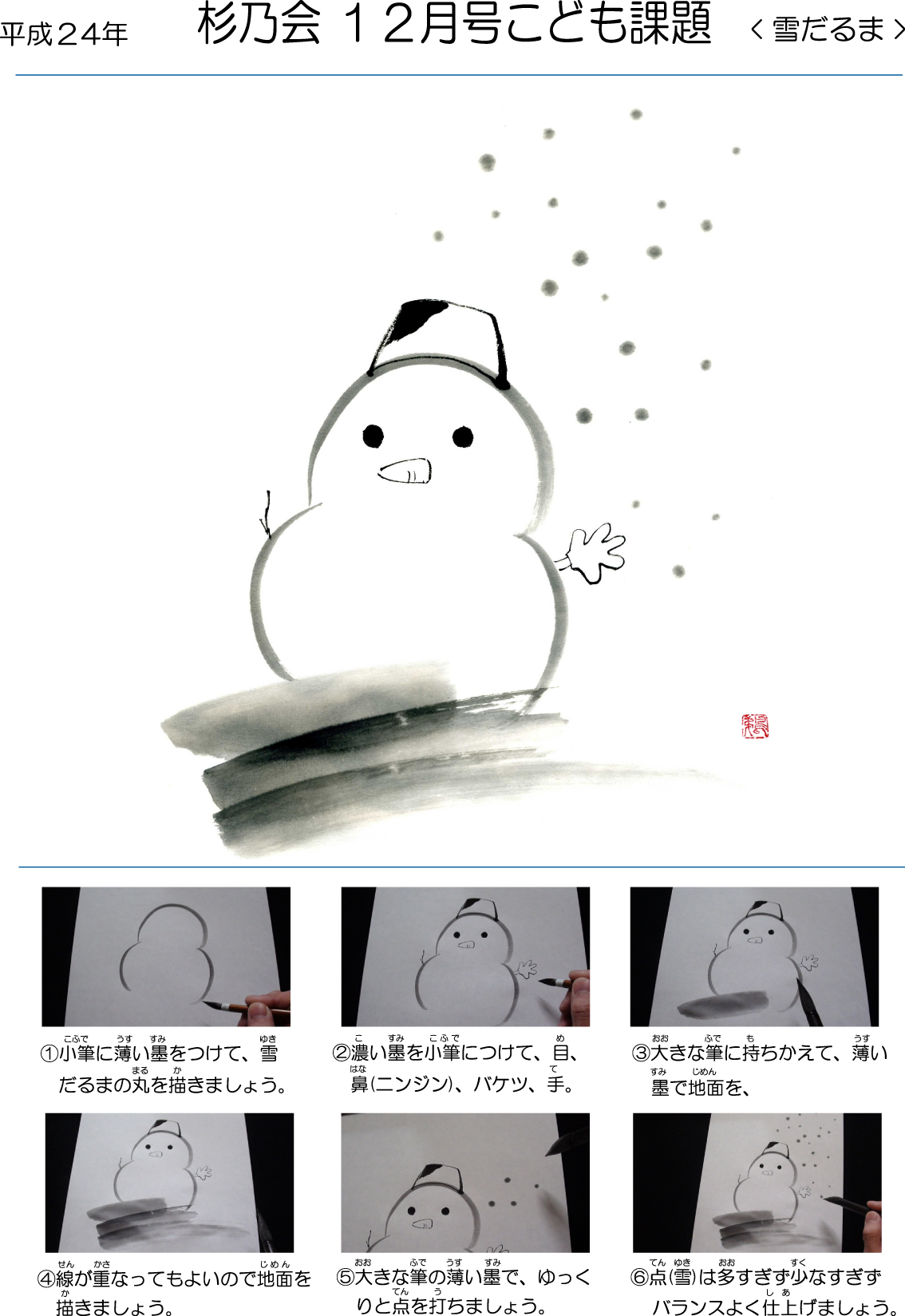 【杉乃会】のお手本は手ほどき次第で誰でも描いていけるものです。新級→中伝→奥伝→遊伝と進んでいきます。又、お手本と作品は分けて考えており、作品における自己表現はまだまだ追及していきます。
