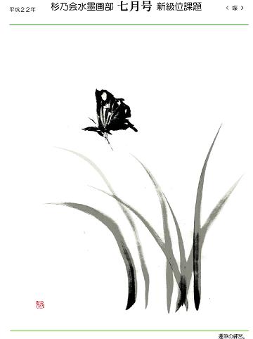【杉乃会】のお手本は手ほどき次第で誰でも描いていけるものです。新級→中伝→奥伝→遊伝と進んでいきます。又、お手本と作品は分けて考えており、作品における自己表現はまだまだ追及していきます。