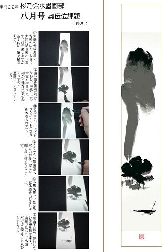 【杉乃会】のお手本は手ほどき次第で誰でも描いていけるものです。新級→中伝→奥伝→遊伝と進んでいきます。又、お手本と作品は分けて考えており、作品における自己表現はまだまだ追及していきます。