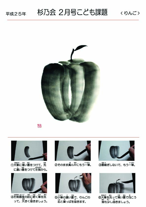 【2013年お手本】 二月号こども課題「りんご」
